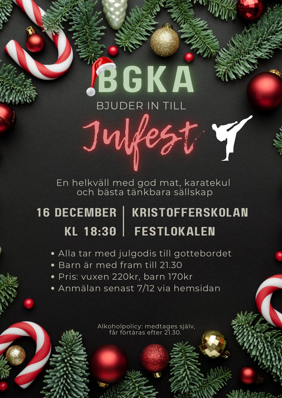Välkommen till vår traditionella julfest och avslutning på karateåret 2023.!
