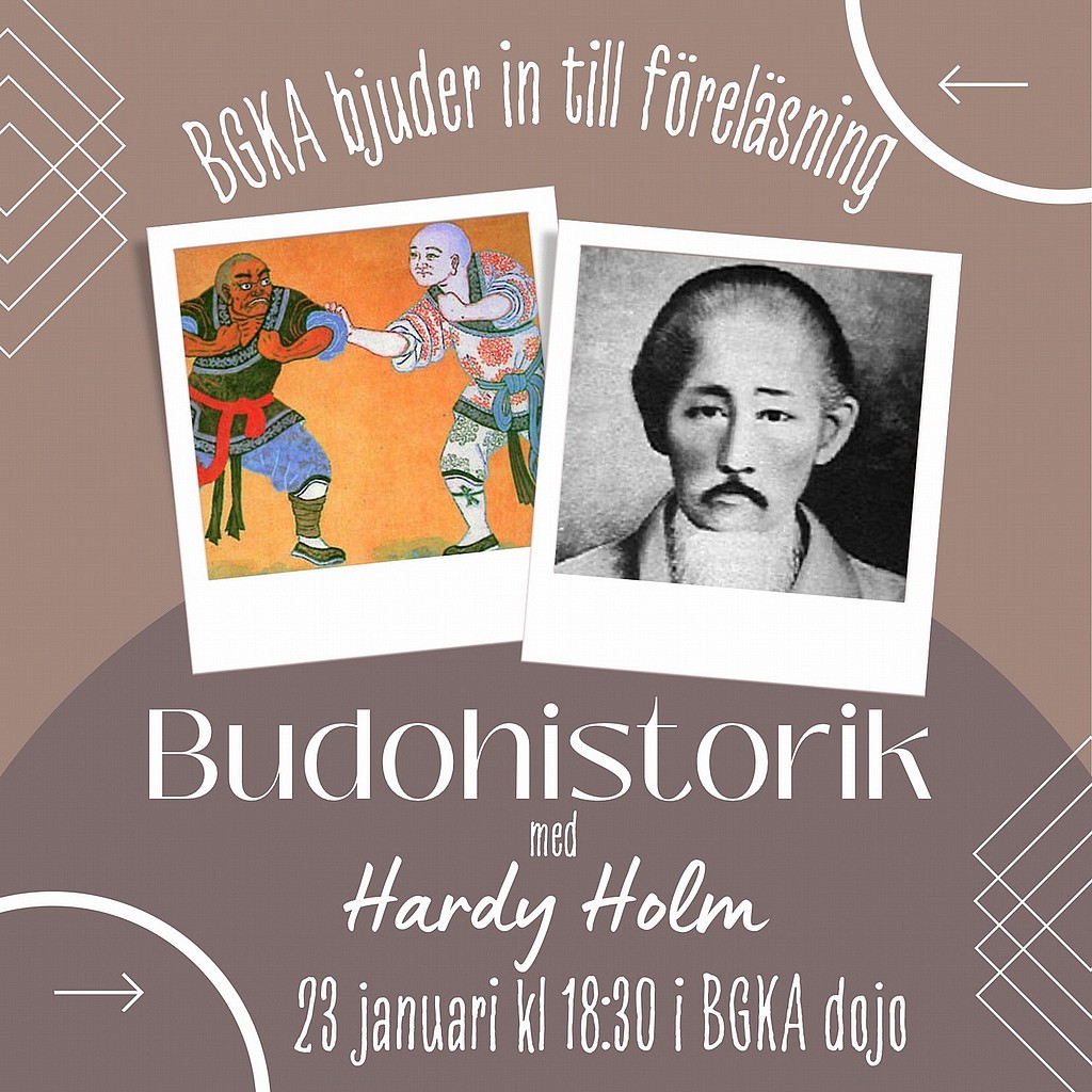 BGKA bjuder in ttill föreläsning 23/1 kl 18:30-20:30. Hardy Holm, verksam inom Goju Ryu, föreläser om budohistorik.