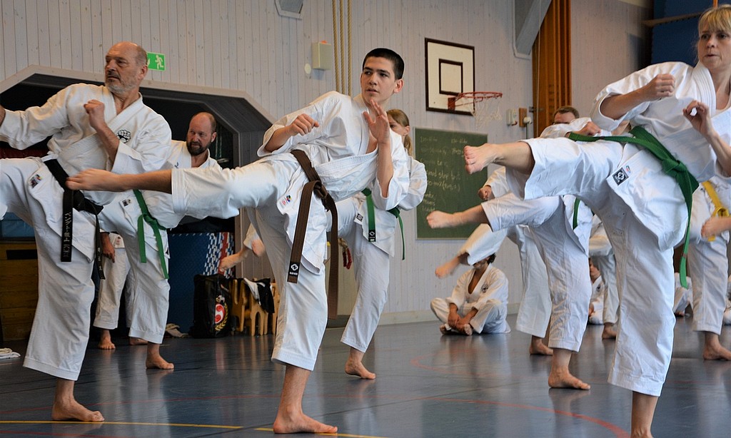 Träningen omfattar fem huvudområden såsom kondition och styrka, kihon (grundtekniker), kata (förutbestämda rörelsemönster utan fysisk motståndare baserat på kihon), bunkai (förutbestämda rörelsemönster med fysisk motståndare baserat kihon) samt kumite (fighting).